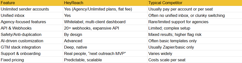 Let’s break down what sets HeyReach apart from other LinkedIn automation platforms.